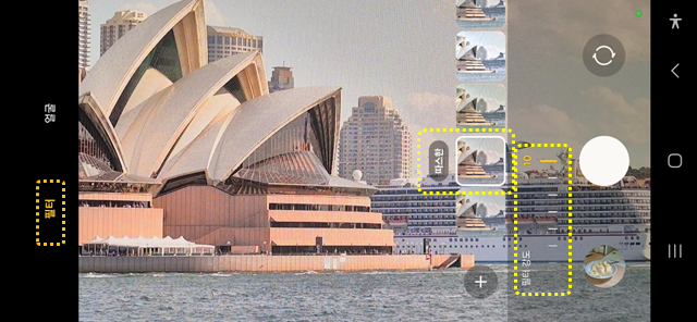 해상도 바로옆에는 모션포토라는 옵션이 자리하고 있습니다. 선택하면 노란색으로 변하면서 활성화 되는데 이 모션포토를 활용하면 촬영직전 2~3초간의 짧은 움직임을 담아서 촬영전의 상황을 보여줄수가 있습니다. 모션포토를 굳이 정의 한다면 "아주 짧은 동영상+스틸컷"이라고나 할까요. 아이폰에서는 라이브 포토 란 이름으로 알려져 있던 기능인데 갤럭시에서는 모션포토 란 기능으로 소개하고 있습니다