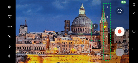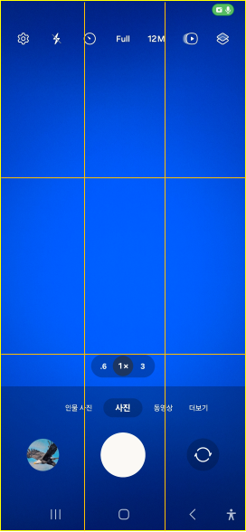 이번에는 카메라모드의 화면 오른쪽에 있는 옵션을 살펴 보겠습니다. 우선 ".6 1x 3" 라고 보일텐데 3을 선택하면 더 우측에 또 한줄의 옵션이 나타나고 더 많은 배율선택을 볼수있게 되는데요 기본은 배율 1이지만 이 배율을 높이면 더 확대 해서 촬영 할 수가 있습니다. (세 배를 선택하면 3배로 확대되고 다섯배를 터치하면 5배 열두배를 선택하면 12배까지도 확대가 가능하겠습니다.)