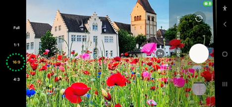 갤럭시 스마트폰 카메라에서는 네가지의 화면비율을 지원하는데 필요한 해상도와 비율에 맞게 카메라에서 선택할수 있습니다. 화면비율은 카메라 앱 화면상단 셔터 타이머 바로 옆에 있습니다.